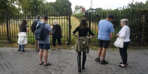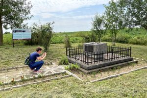 In Grójec this year, TMF partnered with a local Baptist group which they had worked alongside in Otwock many years earlier, and with the two of us plus nearly two dozen local volunteers. Over four work days we cleared all of the known grave areas of tall grasses and new wild shrubs, trimmed trees, repaired concrete, and painted both the front gate to the cemetery and the symbolic fence around the wartime mass grave within the cemetery. Highlights of our time with TMF were the visit and brief lecture from a local school teacher who has focused her classes on the Jewish history of Grójec, the return of more than a dozen Jewish headstone fragments found near a construction site in town, and a visit to the office of a local land surveyor who himself secured displaced Jewish headstones discovered in roadworks decades ago and held them until he could identify a safe way to preserve them – our group of volunteers moved two headstones to the cemetery, and TMF made arrangements through the local Baptist group for the remainder to be moved with heavier equipment.