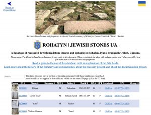 In last year’s annual report we described the documentation component of a large and multi-site Jewish headstone recovery project organized by our friend Sasha Nazar for the Sholem Aleichem Jewish Cultural Society of Lviv and the Lviv Volunteer Center of Hesed-Arieh, which includes headstones belonging to the Jewish cemeteries of Lviv, Dobromyl, Sokal, Zbarazh, and Rohatyn. While we had originally used the Rohatyn headstone recovery project to develop the online database design for the site we maintain called JewishStonesUA, in order to capture photo and transcription data from the other sites while those activists were available we delayed working on the Rohatyn portion except for initial trials. New headstone recovery and documentation work in Lviv further postponed the Rohatyn work through summer this year, and significantly amplified that portion of the database.