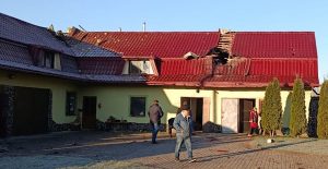 Damage to a building in Verbylivtsi from the Russian attack last month.